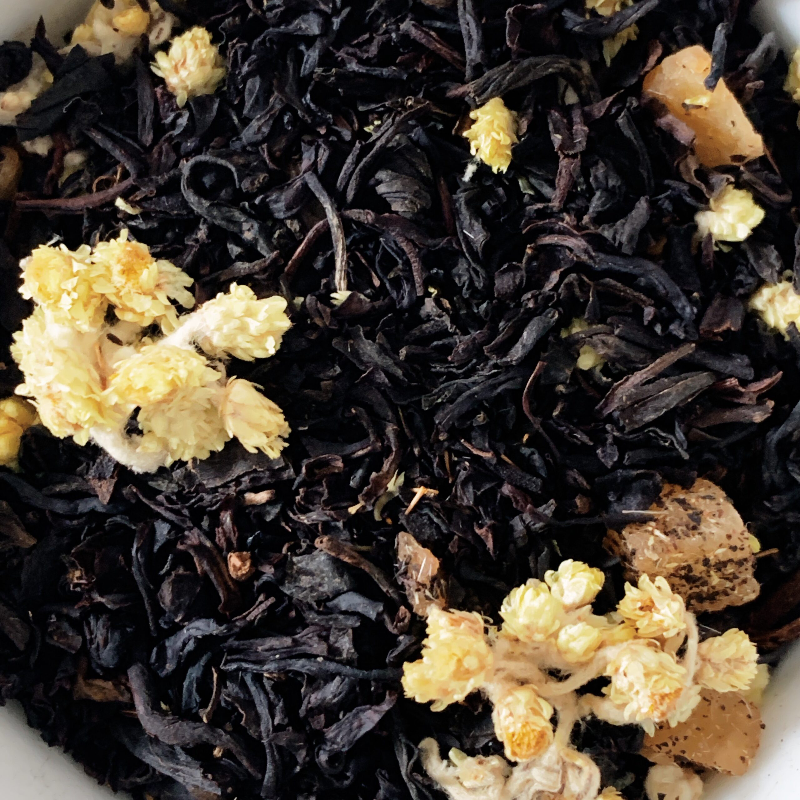 Ingredienti: tè nero cinese (78%), cubetti di mango, (mango, zucchero), aroma, fiocchi di mango, granulato di yogurt, fiori.