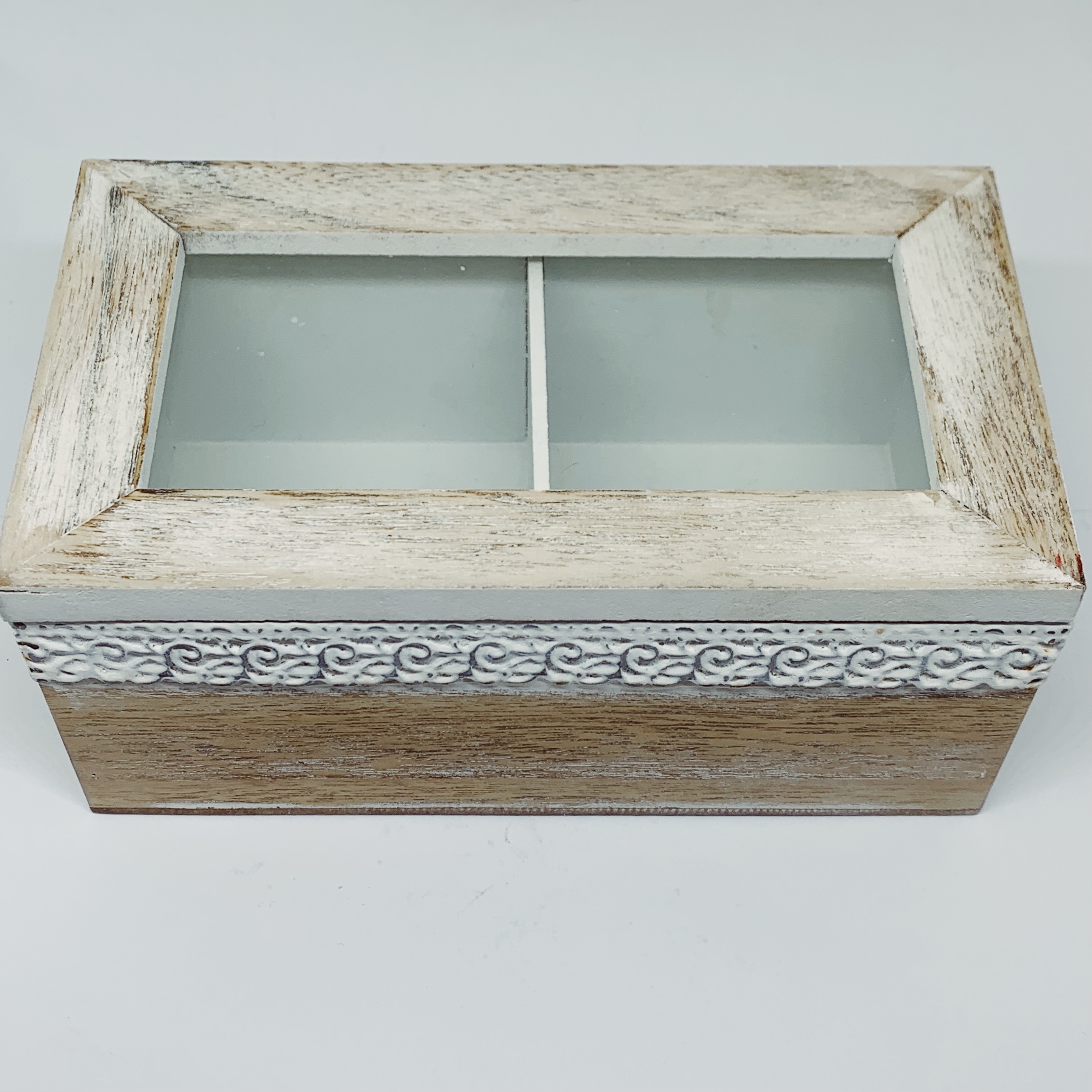 Scatola in legno chiaro e coperchio in vetro